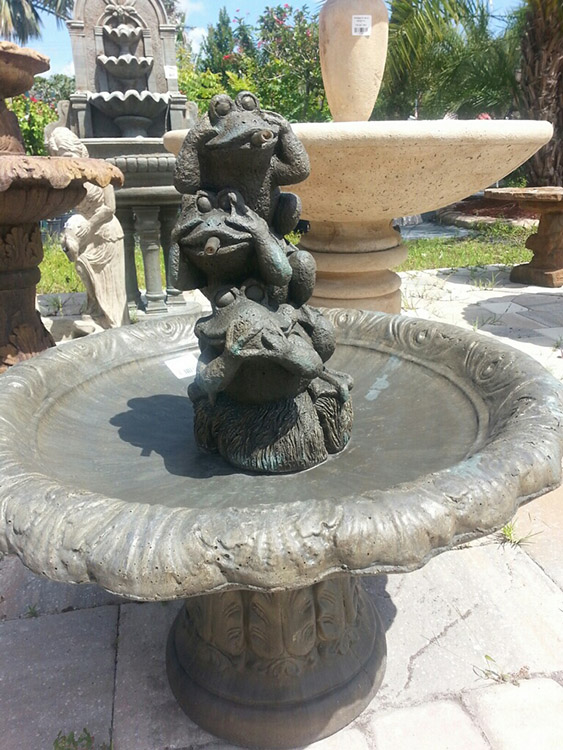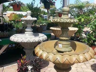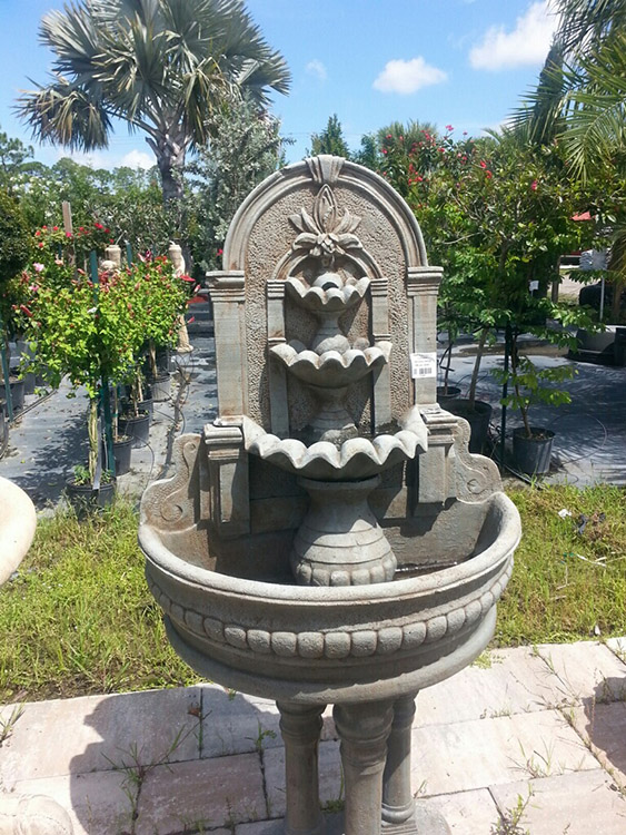All fountains come complete with pumps. These are solid stained concrete fountains so be prepared with a truck or trailer to transport to your home. If your local to our area we do offer delivery and set up at an additional cost.